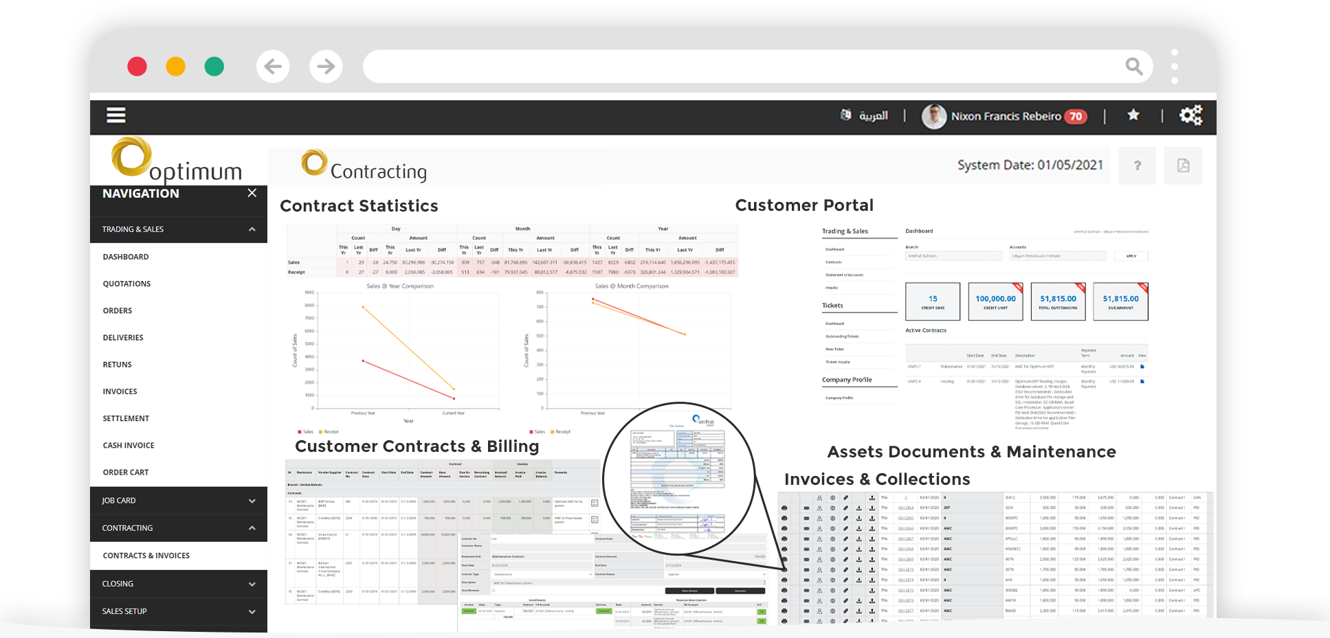 Optimum Contracting module is an integrated system comprising of full documentary cycle of operations from daily / monthly / annual contracts or providing direct services, follow through contracting process and then billing the client periodically as per the contract or directly.